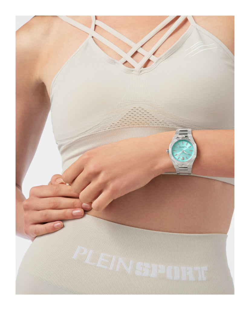 36mm Stainless Steel Case Stainless Steel Bracelet Light Blue Sunray Dial 5 ATM Deployant Buckle 2 year warranty 3 Hand Quartz Movement