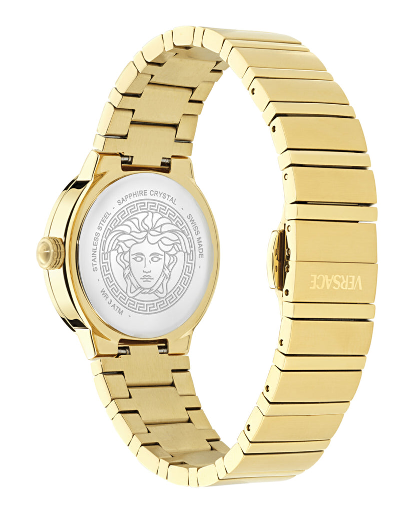This new collection recalls the feminine and elegant Versace soul and DNA. The 3D Medusa at 12h and the Versace logo repeated on the top ring give to this watch a unique and very Versace personality.