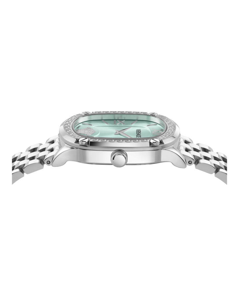 The Versace Couture collection redefines timeless glamour with a refined oval case and graceful 40x29mm silhouette. Anchored by the iconic Medusa at 6 o’clock and framed by a Greca top ring, this timepiece is a bold expression of Versace’s couture heritage.
