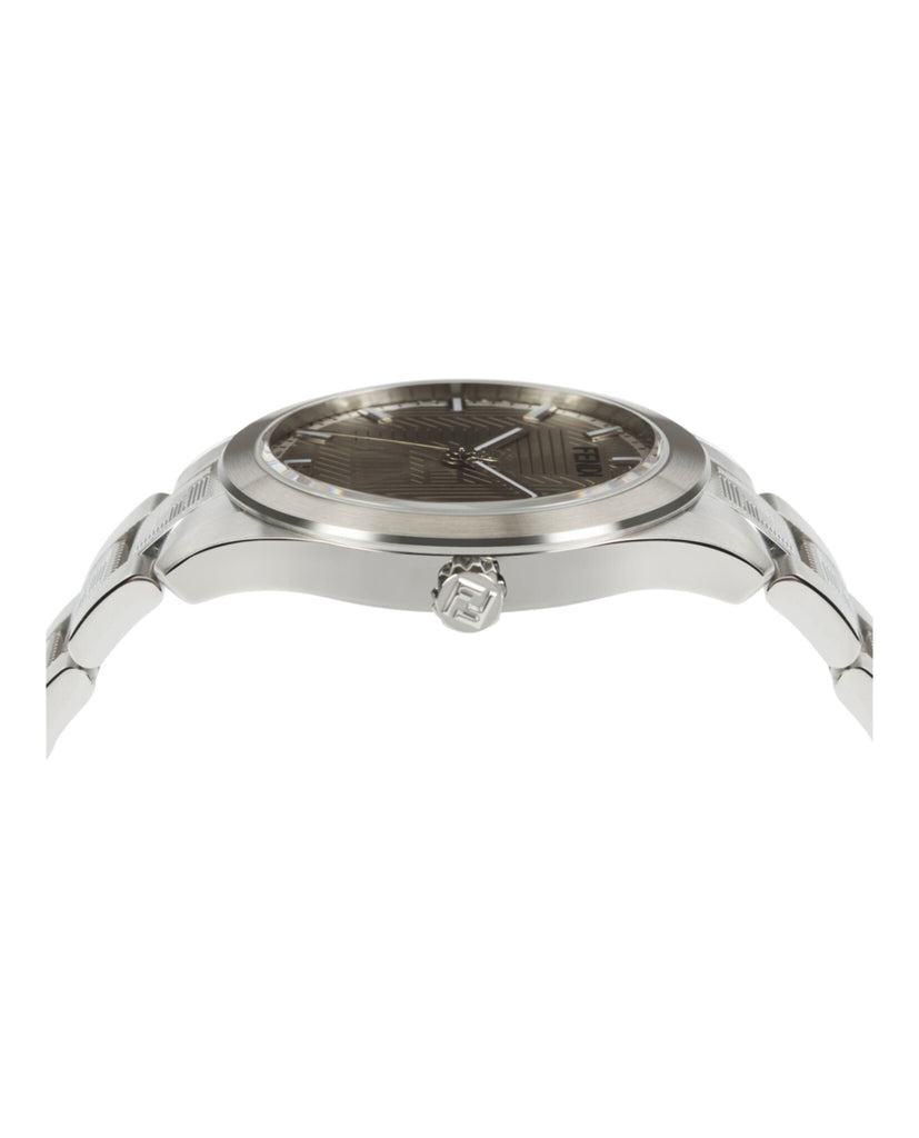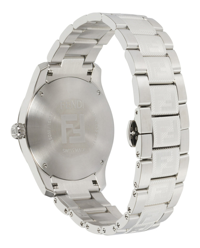 The Fendi Shadow watch balances bold scale and refined detail. A 40mm case and guilloché dial meet a polished bracelet band for a Swiss-made statement of contemporary luxury.
