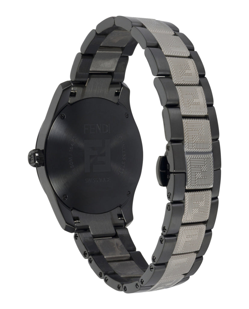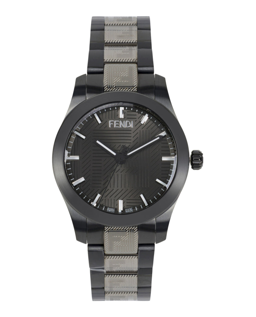 Fendi’s Shadow watch makes a sophisticated impression with its 40mm case, textured guilloché dial, and bracelet strap, embodying Swiss craftsmanship and bold design.