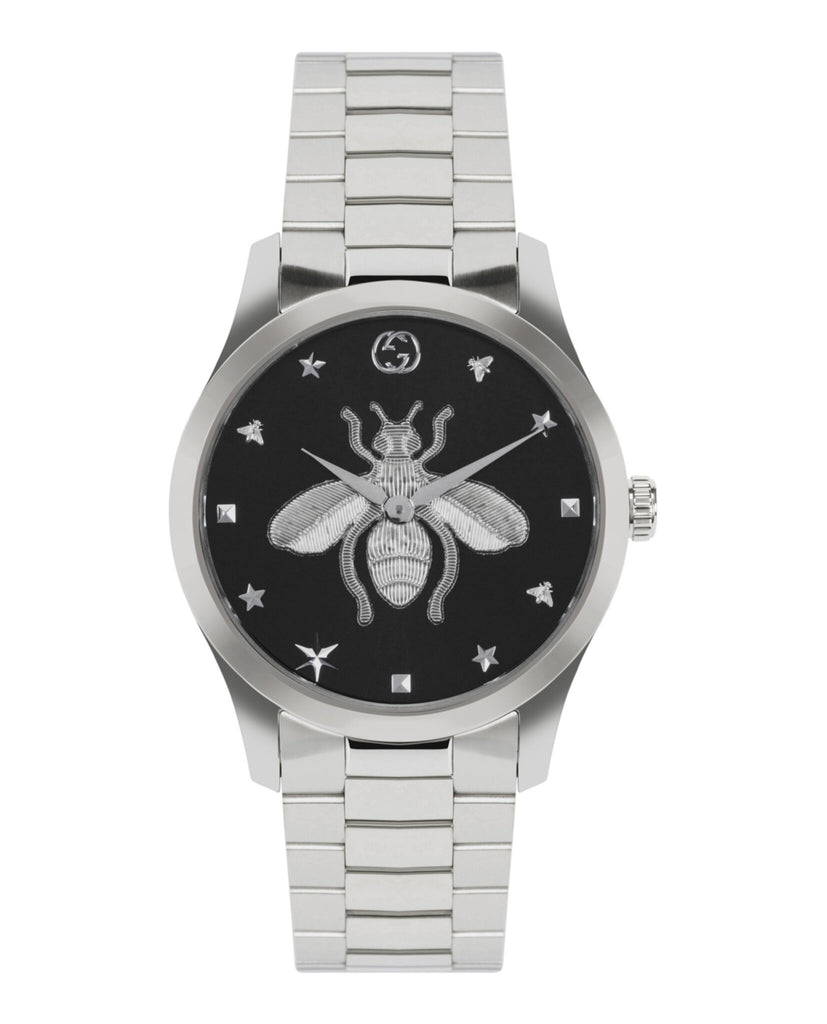 38mm Stainless Steel Case Stainless Steel Bracelet Black Sunray Dial 5 ATM Deployant Buckle Swiss Made 2 Hand Quartz Movement