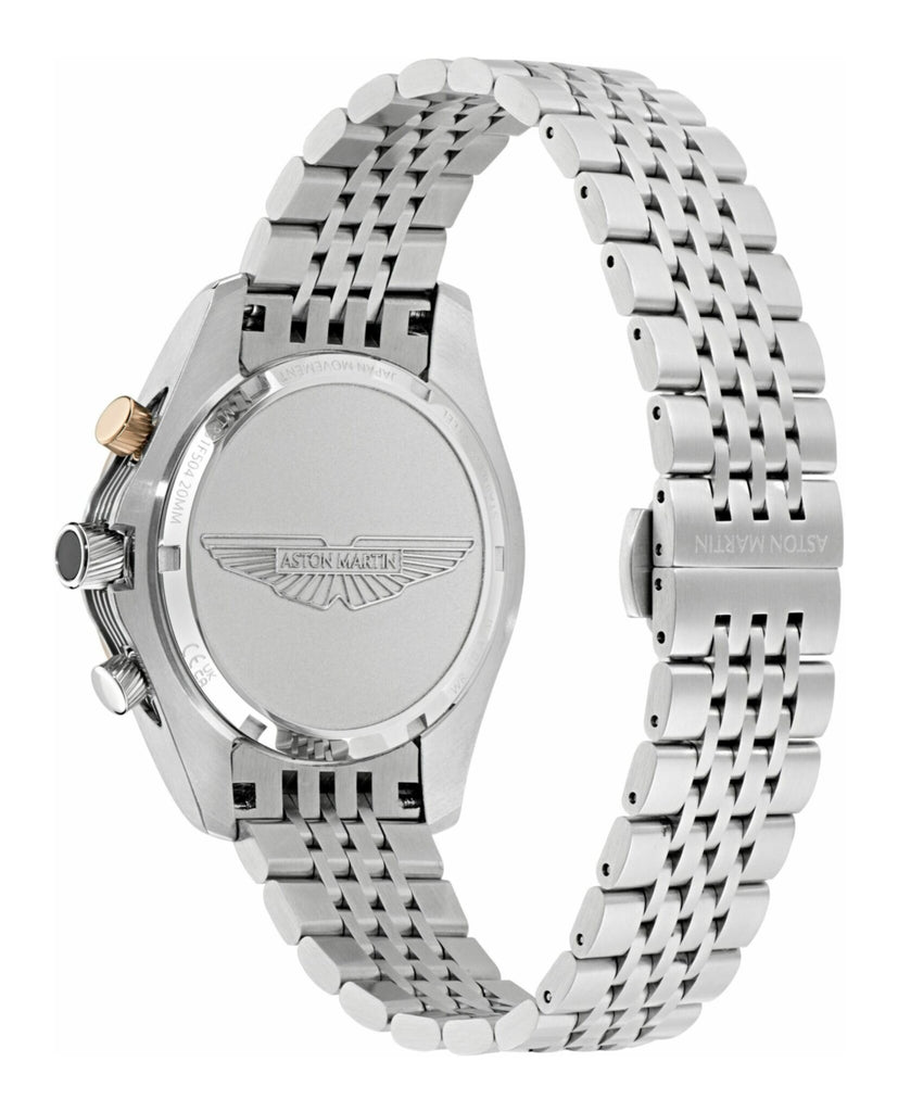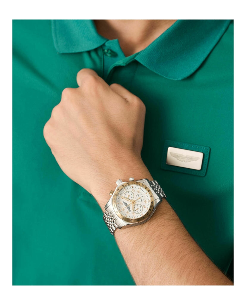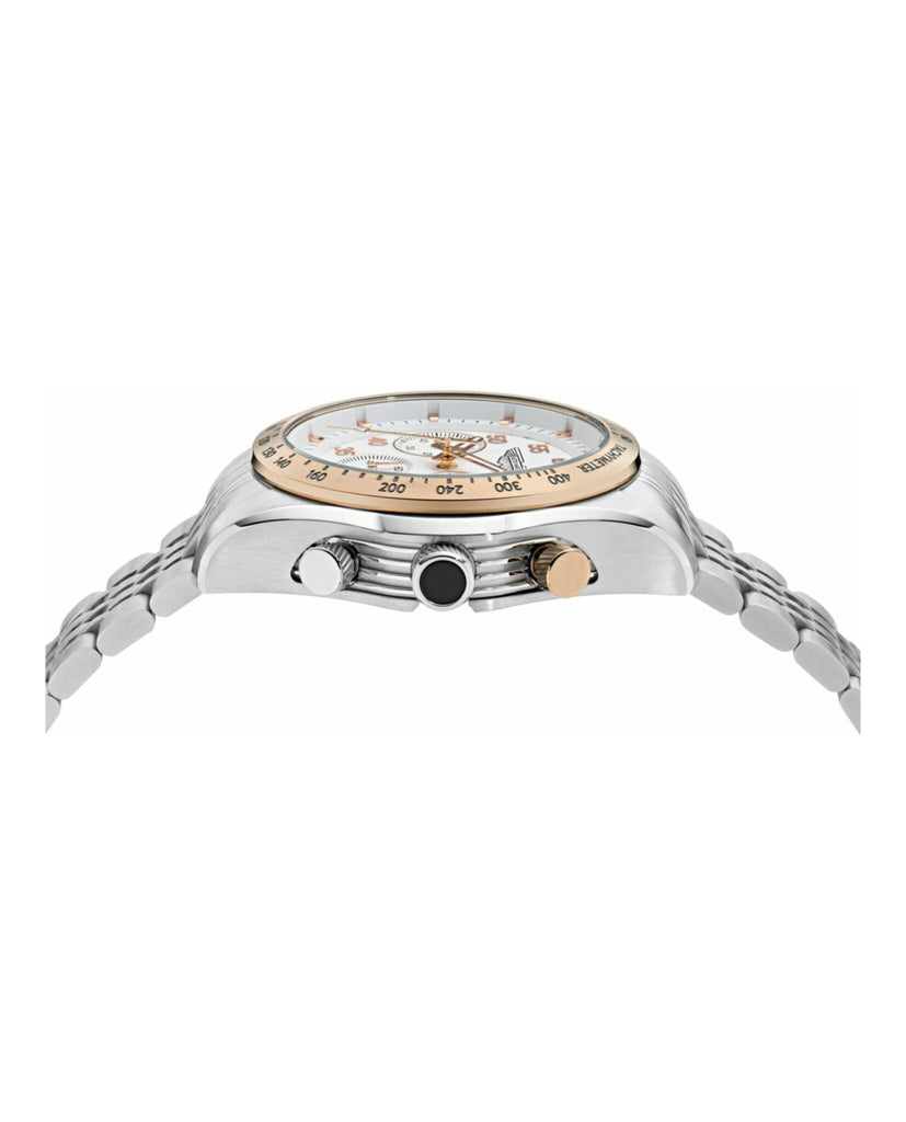 Engineered for elegance and control. Featuring a bright white dial framed by a rose gold tachymeter bezel, this SGT edition pairs sporty clarity with elevated warmth. With a 42mm recycled stainless steel case, a matching bracelet completes the look, offering a perfect fusion of motorsport inspiration and everyday elegance.