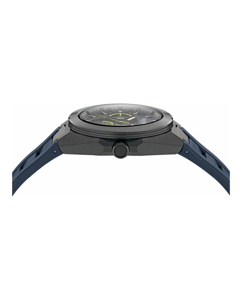 Crafted for an everyday look, engineered for motion.This TKS watch features a 42mm IP gun recycled stainless steel case with multifunction movement. The dynamic blue silicone strap ensures comfort and flexibility, while lime essence details on both the sweep and counters echo Aston Martin’s grille design. The side-case construction adds a distinctive, technical finish.