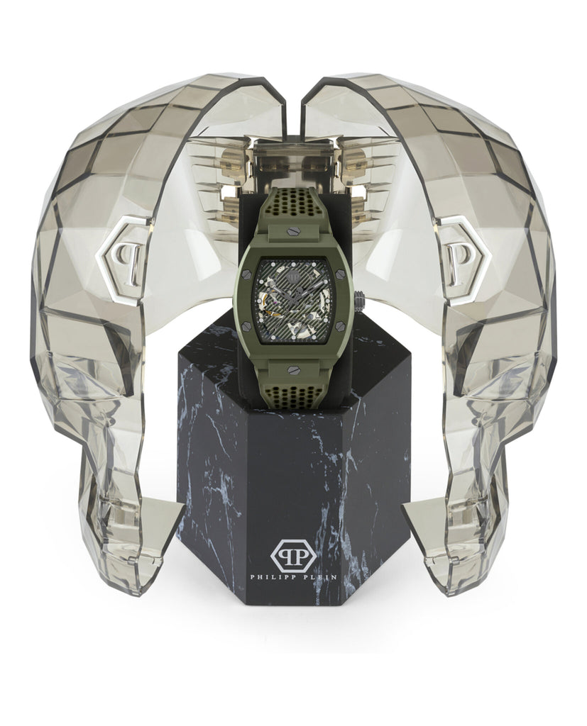Philipp Plein is not one to stand still. The new generation of eco-ceramic $keleton is yet another leap forward for our iconic bestseller. Highlighting the sophisticated movement and design, this high-tech material creates a precious and luxurious finish accentuating the supreme elegance of the tonneau shaped case. Philipp Plein is eager to explore innovations and keep pushing boundaries and outdoing itself while staying true to its bold and maximalist nature.