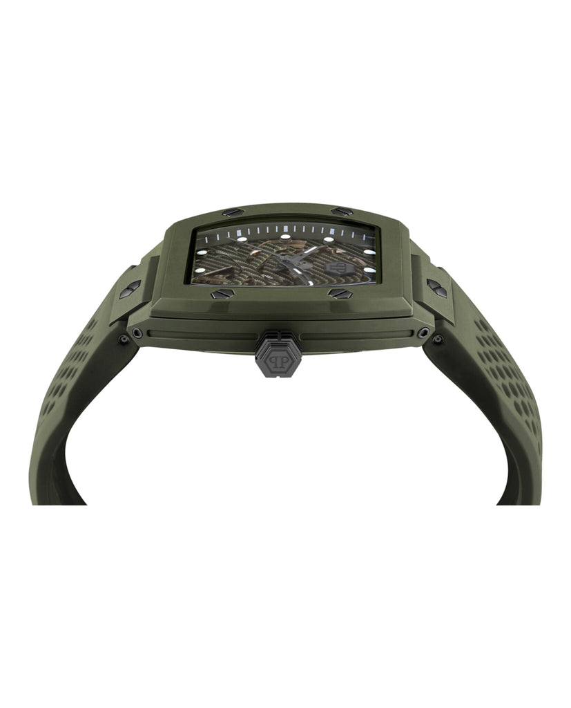 Philipp Plein is not one to stand still. The new generation of eco-ceramic $keleton is yet another leap forward for our iconic bestseller. Highlighting the sophisticated movement and design, this high-tech material creates a precious and luxurious finish accentuating the supreme elegance of the tonneau shaped case. Philipp Plein is eager to explore innovations and keep pushing boundaries and outdoing itself while staying true to its bold and maximalist nature.