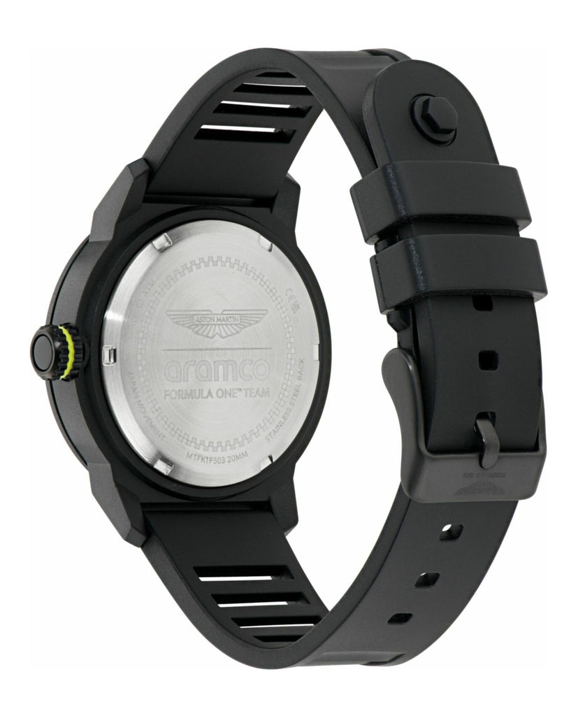 Fuel your style with PDK. With a 40mm black plastic case, black dial, and black strap, this version embraces a sleek, modern look. Subtle lime essence and white index details on the black top ring provide just enough punch to break through the dark palette.