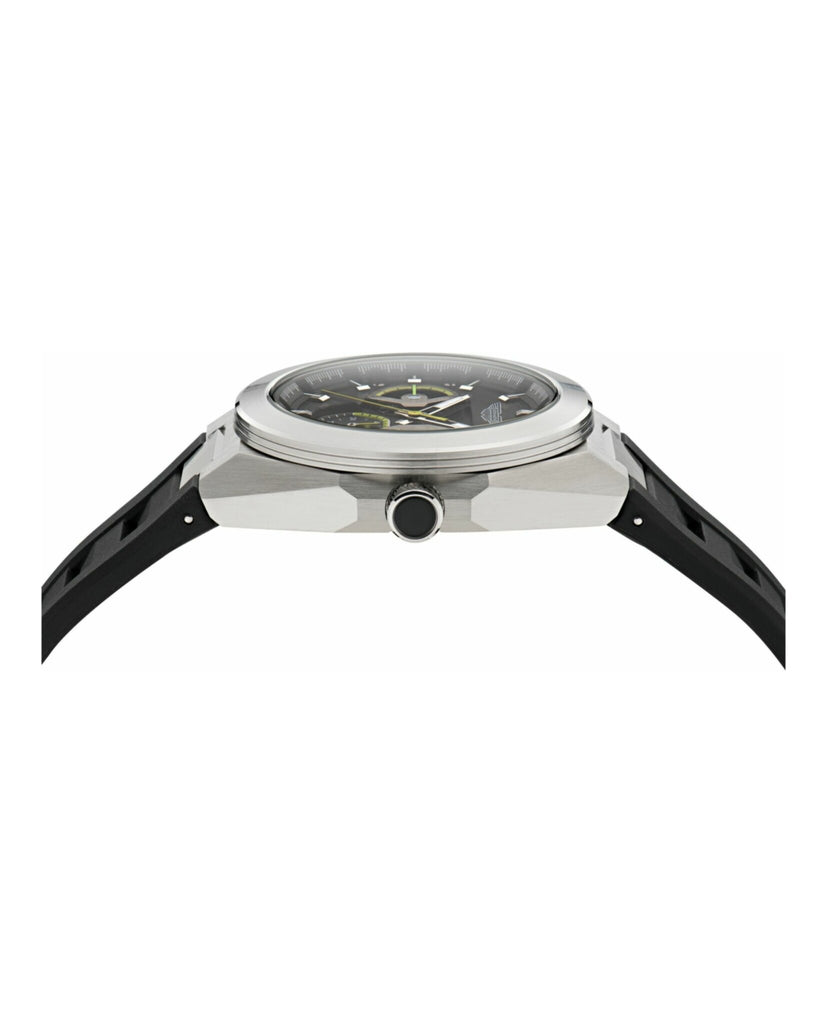 Crafted for an everyday look, engineered for motion.This TKS watch features a 42mm recycled stainless steel case with multifunction movement. The dynamic black silicone strap ensures comfort and flexibility, while lime essence details on both the sweep and counters echo Aston Martin’s grille design. The side-case construction adds a distinctive, technical finish.