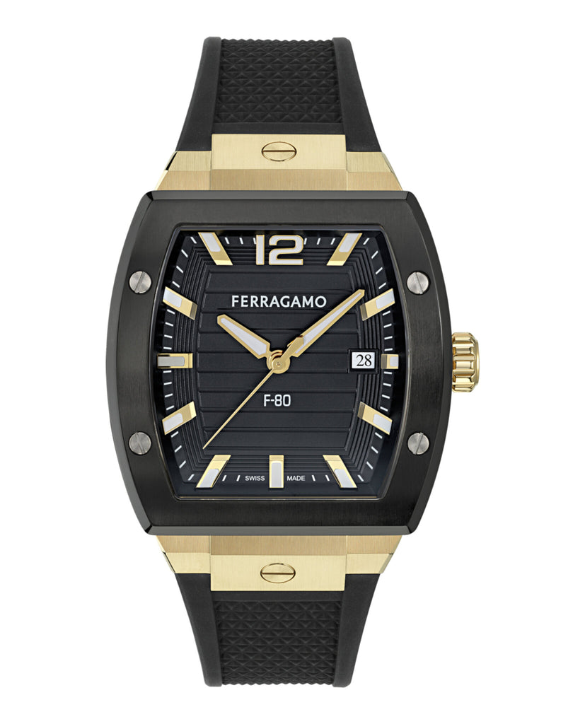 The F-80 Tonneau is a statement of bold elegance, featuring a distinctive tonneau shaped case and a guilloché finished dial that catches the light beautifully. Luminous indexes and hands ensure readability, while the strap, crafted from recycled PU, reflects a balance of innovation and timeless design. With water resistance up to 100M, this watch effortlessly blends refined style with everyday versatility.