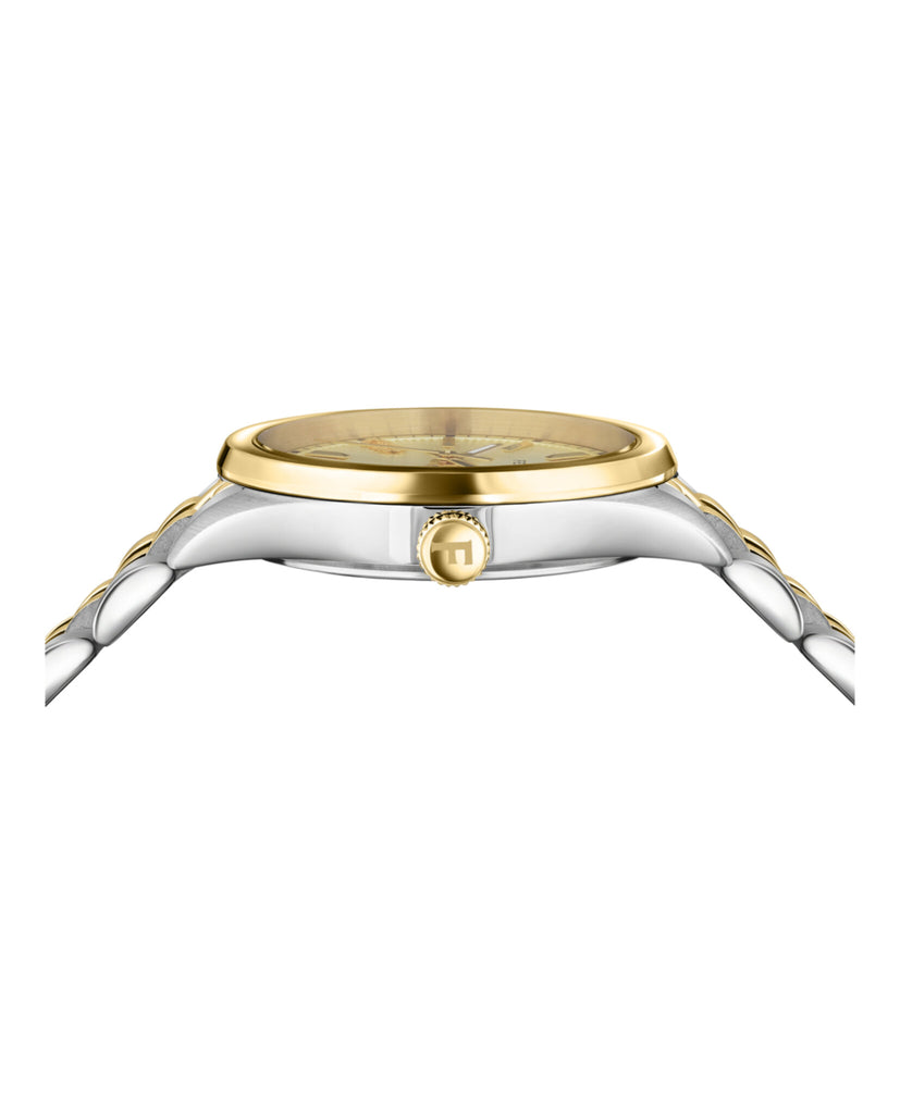 38mm Two Tone Two Tone Bracelet Gold Guilloche Dial 5 ATM Deployant Buckle 2 year limited warranty + 2 Swiss Made 3 Hand Quartz Movement