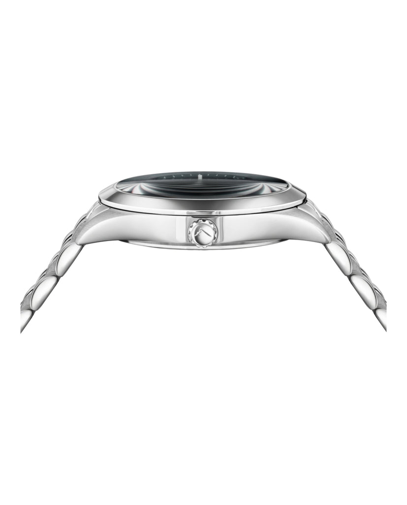 42mm Stainless Steel Case Stainless Steel Bracelet Black Sunray Dial 5 ATM Deployant Buckle 2 year limited warranty + 2 Swiss Made 3 Hand Date Quartz Movement