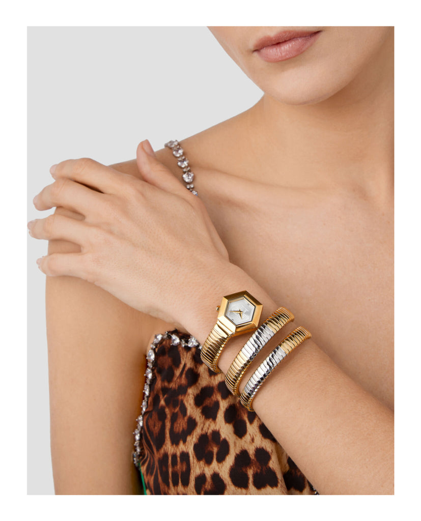 A symbol of unstoppable glamour and luxury, $nake Hexagon is the most tantalizing timepiece of the Philipp Plein SS23 collection. A seductive embodiment of iconic sophistication, the $nake Hexagon is an irresistible symbol that gives women self-confidence and strength. Avant-garde geometries, sensual curves, exquisite appeal and precious reflections, the $nake Hexagon watch embodies the soul of a jewel. In perfect Philipp Plein style, its design matches iconicity and beauty.