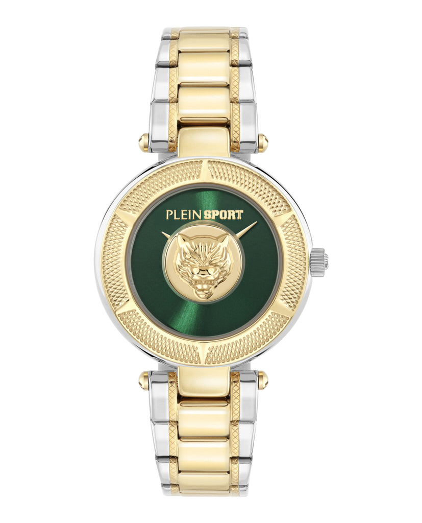 34mm Two Tone Case Two Tone Bracelet Green Enamel Dial 5 ATM Deployant Buckle 2 year warranty 2 Hand Quartz Movement