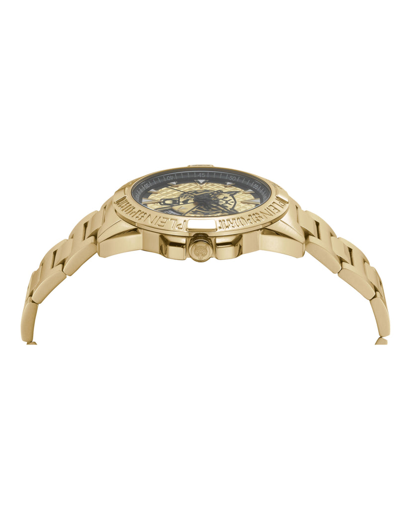 44mm IP Yellow Gold Case IP Yellow Gold Bracelet Gold Guilloche Dial 5 ATM Deployant Buckle 2 year warranty 3 Hand Date Quartz Movement