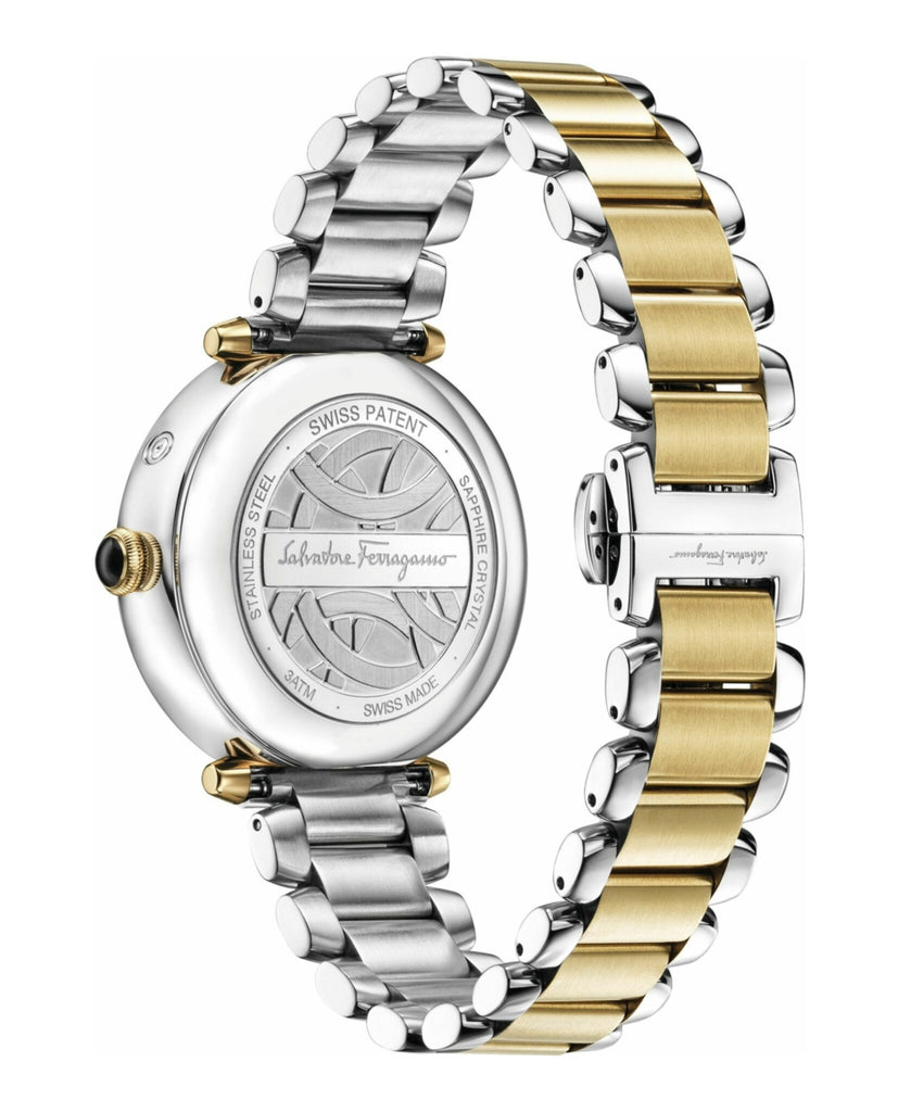 Driven by a patented quartz movement, designed and manufactured exclusively for Salvatore Ferragamo, the distinguishing feature of Cuore Ferragamo is the dial decorated