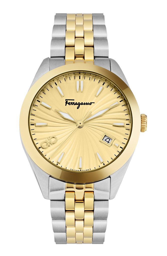 A timeless Ferragamo timepiece, the Ferragamo Classic features a fashionable twist and beautiful details: Double Gancini at 8 o'clock to emphasize brand identity and a rich guilloché dial. To complete the look a very detailed bracelet for a 24 hour use.