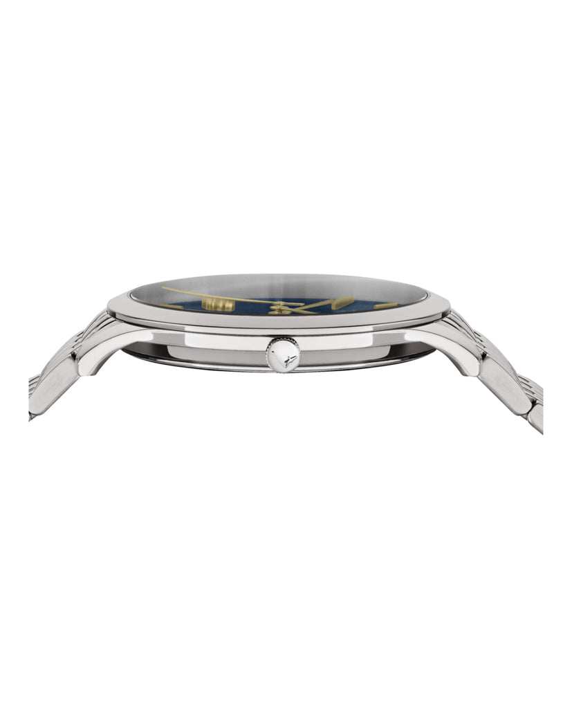 40mm Stainless Steel Case Silver Bracelet Blue Sunray Dial 3 ATM Deployant Buckle Swiss Made 3 Hand Quartz Movement 2 year limited warranty + 2