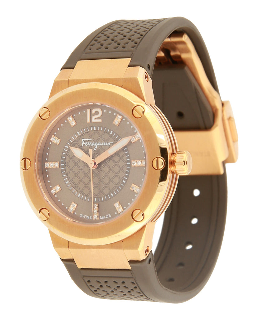 The new 3 hands gents version offers even more performance and appeal. Sporty and sophisticated, it has an important XL-sized case (44 MM in diameter) and the distinctive decorative features that define the entire collection: six screws on the bezel and the guilloché pattern on a black, silver, blue or dark brown dial. The new ladies version has a steel or IP gold case, downsized to 33 MM in diameter, ideal also for smaller wrists. Six decorative screws on the bezel and the refined colour shades of the dial are distinctive features of this collection. From elegantly essential silver, black and nude, nuances of pink and brown, to luxurious gold: for a dial enriched by a special guilloché pattern that is reprised on the colour-coordinated caoutchouc strap.