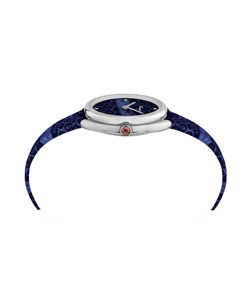 The Salvatore Ferragamo brand new collection for a fashion woman who loves to dare. Cuir is an elegant dress watch which radiates the fun and frivolity of the unexpected. It is inspired by the fascination for the exotic combined with Salvatore Ferragamo strong heritage in the leather field. The slip-thru elaphe leather strap and the full metal dial create an expansive optical illusion between strap/bracelet and dial.