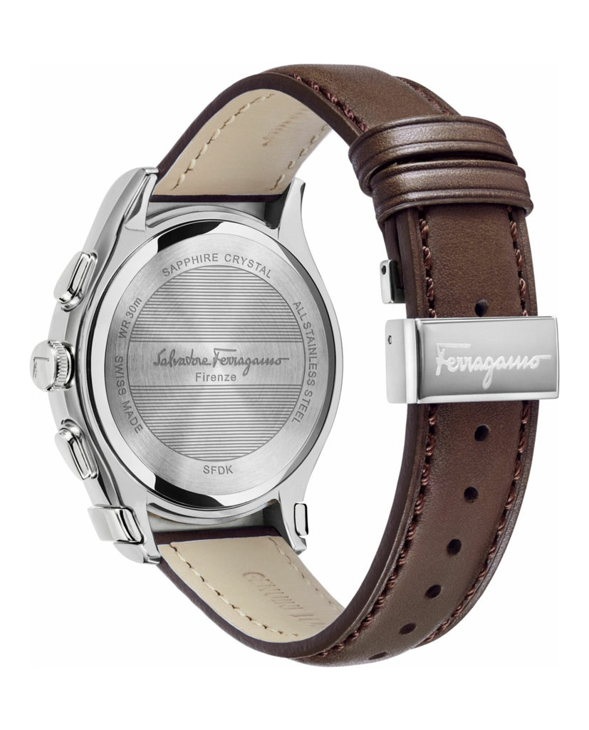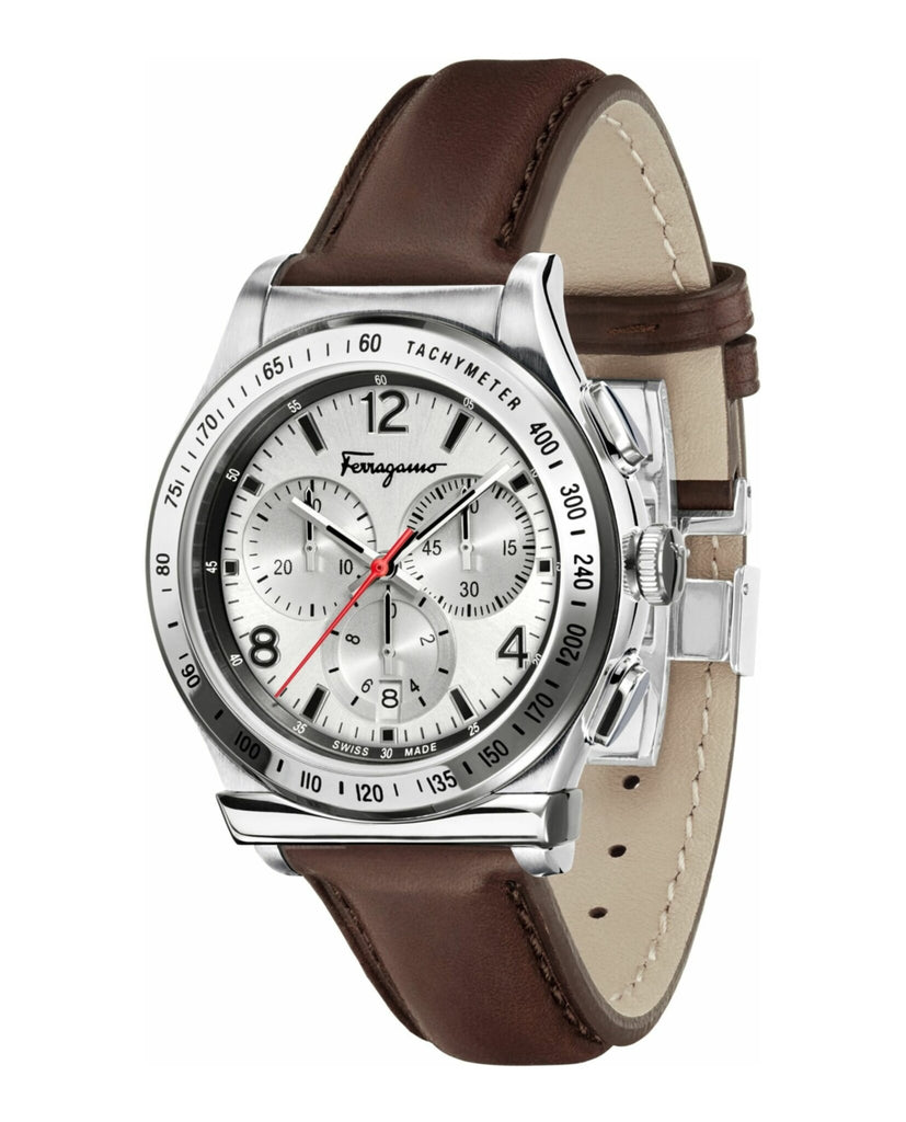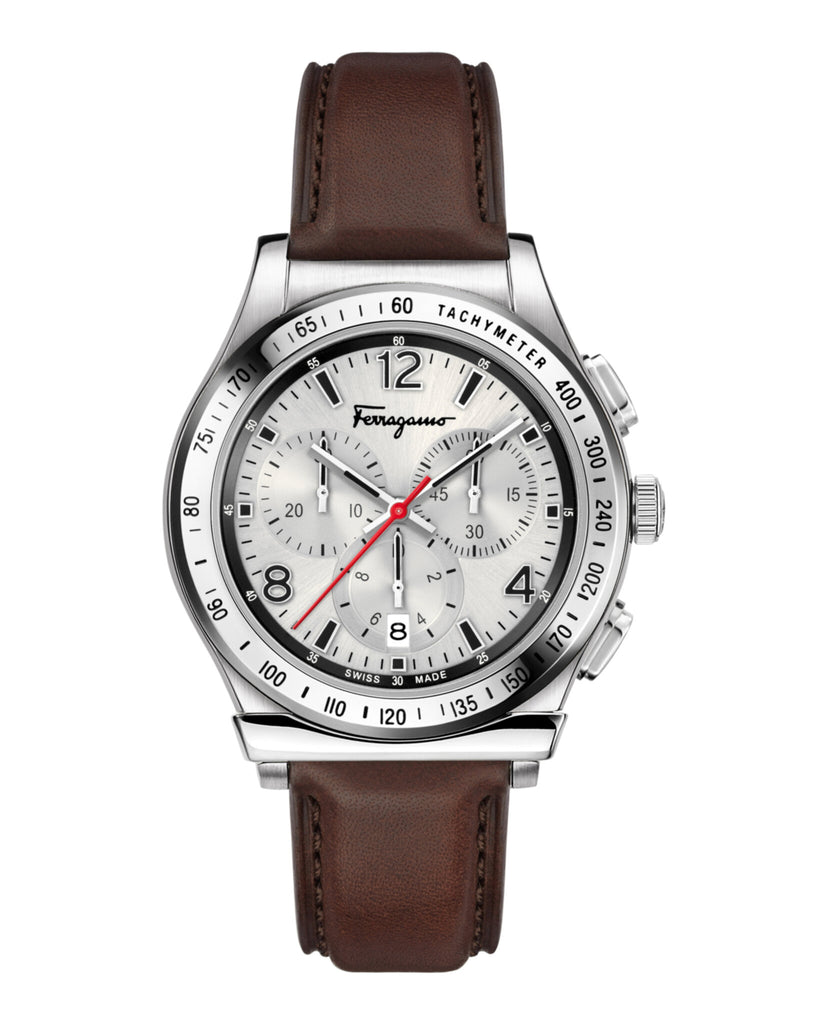 The Ferragamo 1898 collection renews itself with a restyled look for the case and top ring, which now come with a lighter design while maintaining the iconic Gancino shape. Five bold chronographs enrich the collection, featuring a sporty look with contrasting colors on the dial