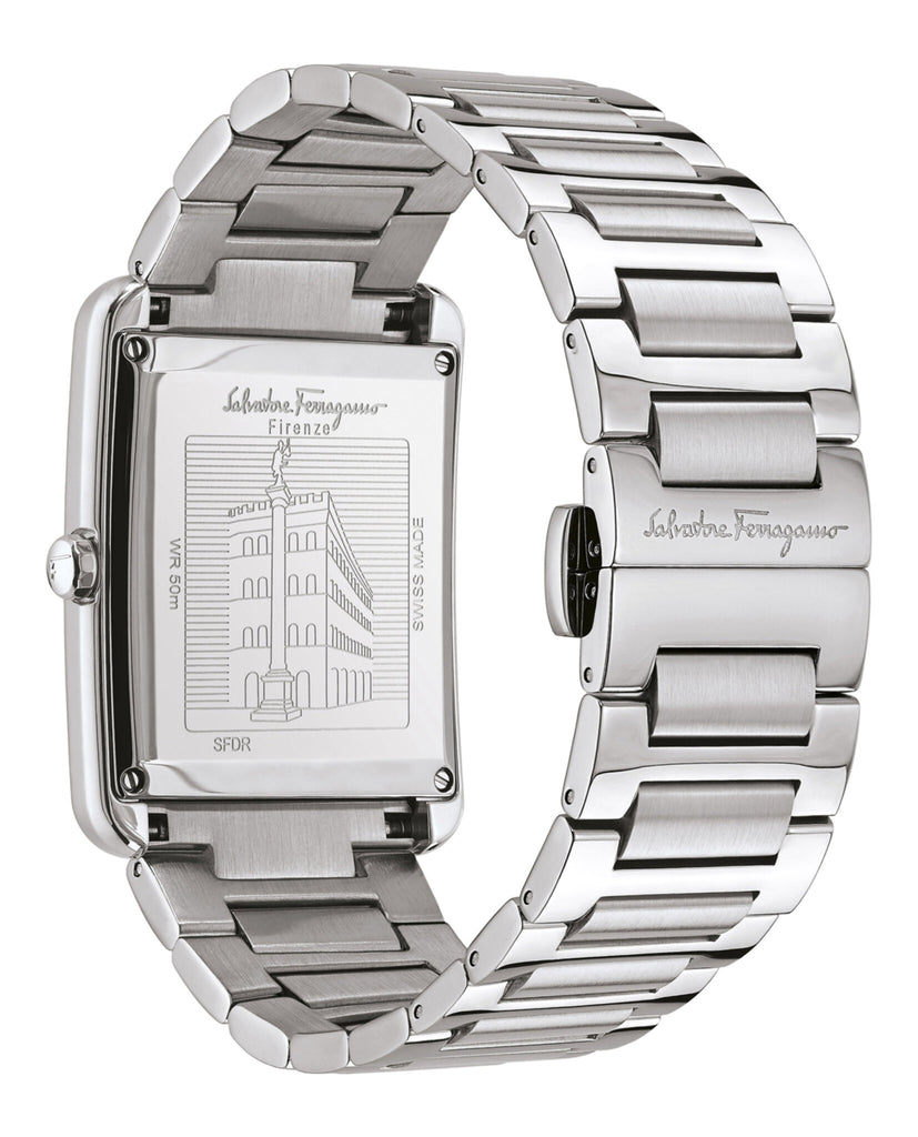 The new Ferragamo Tank Gent is a contemporary and glamourous collection with a vintage inspiration. It is characterized by geometrical shapes and a minimalist taste. The strap versions come with karung leather in 3 classical yet very chic color variations.