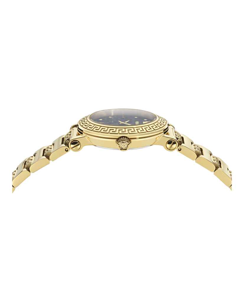 30mm IP Yellow Gold Case IP Yellow Gold Bracelet Black Guilloche Dial 3 ATM Deployant Buckle 2 year limited warranty + 2 Swiss Made 2 Hand Quartz Movement