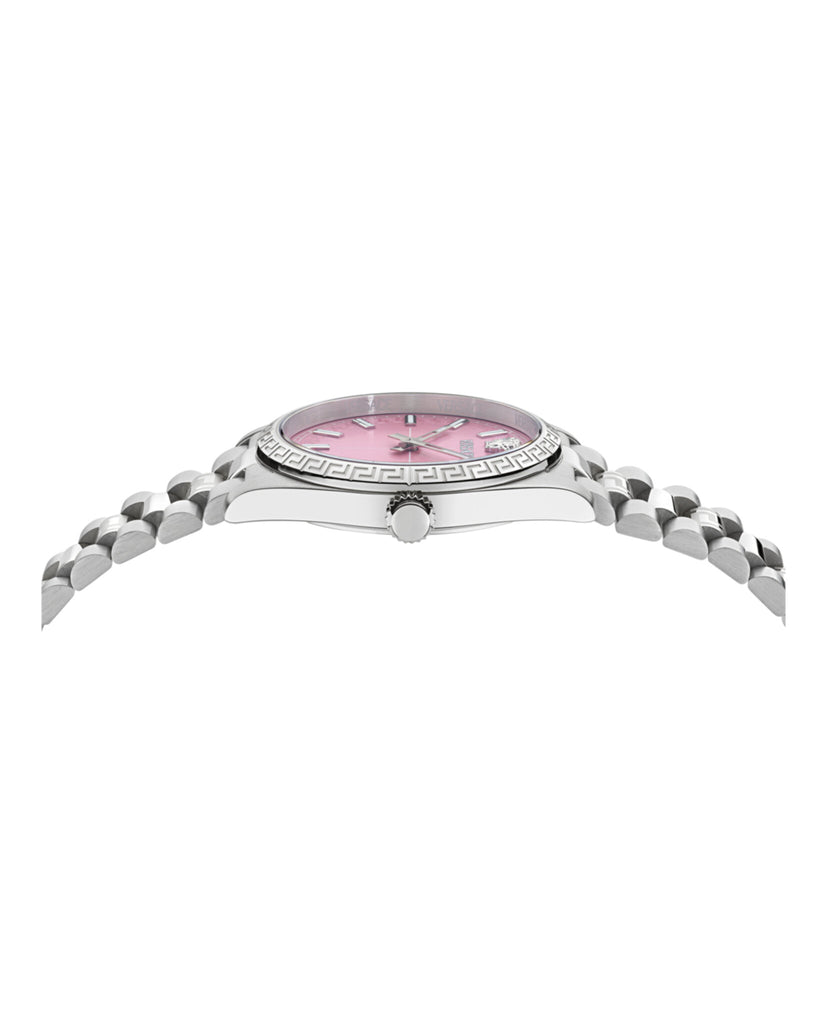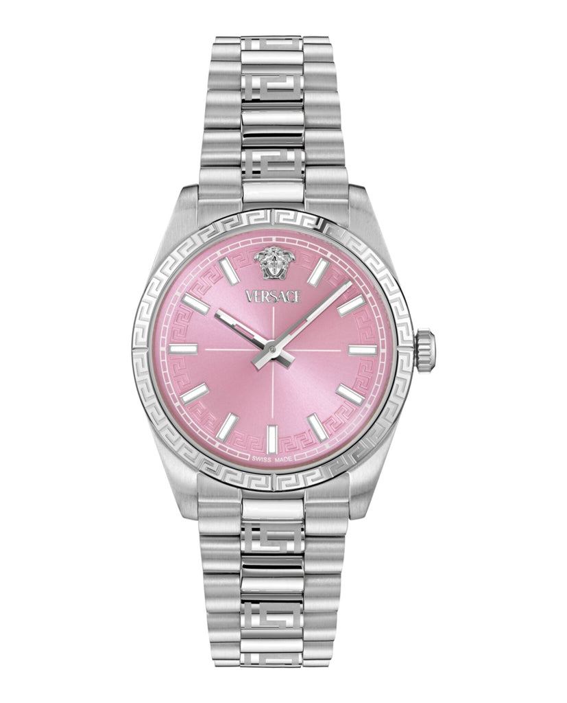 32mm Stainless Steel Case Stainless Steel Bracelet Pink Sunray Dial 3 ATM Deployant Buckle 2 year limited warranty + 2 Swiss Made 2 Hand Quartz Movement