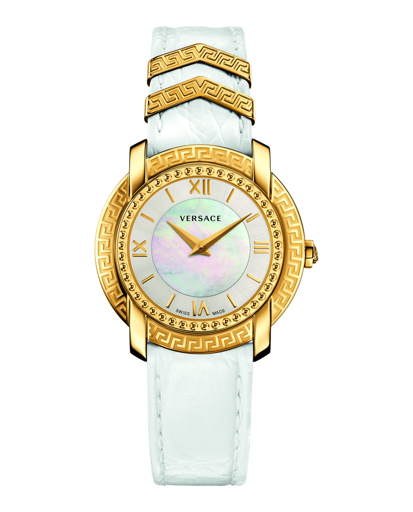 36mm Gold Case Silver Sunray Dial White Strap Mineral 5 ATM Quartz Movement 2 year limited warranty + 2