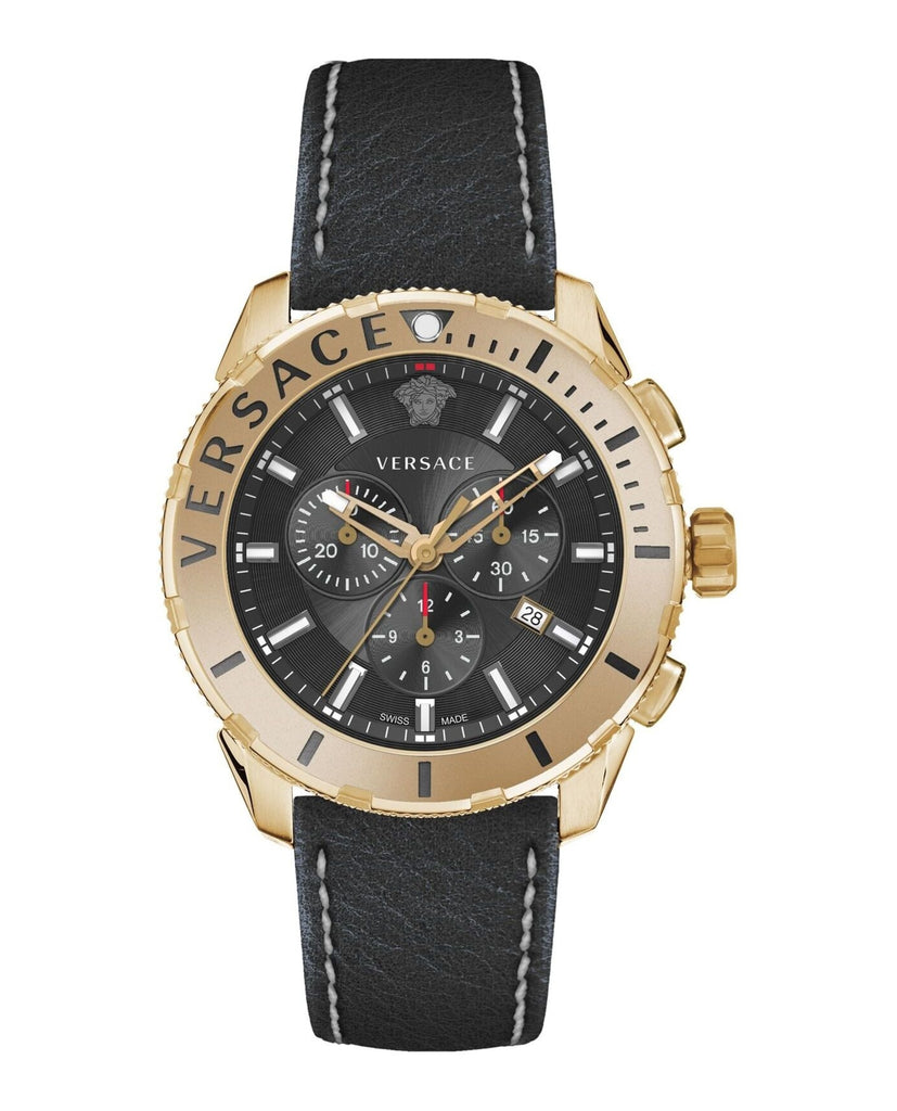 48mm IP Yellow Gold Case; Black Dial; Quartz Chrono Movement Black Leather Strap Swiss Made 2 year limited warranty + 2 Sapphire crystal with anti-reflex treatment