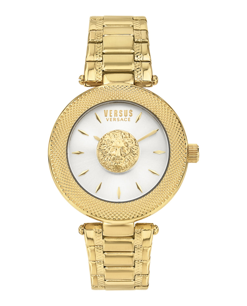 Versus Brick Lane Lion is the timepiece with a name inspired by London's trendiest fashion district. Made entirely from polished steel, Versus Brick Lane Lion is dominated by the distinctive Lion Head. The Clou de Paris motif on the top ring gives the watch an even more luminous, deluxe appearance.