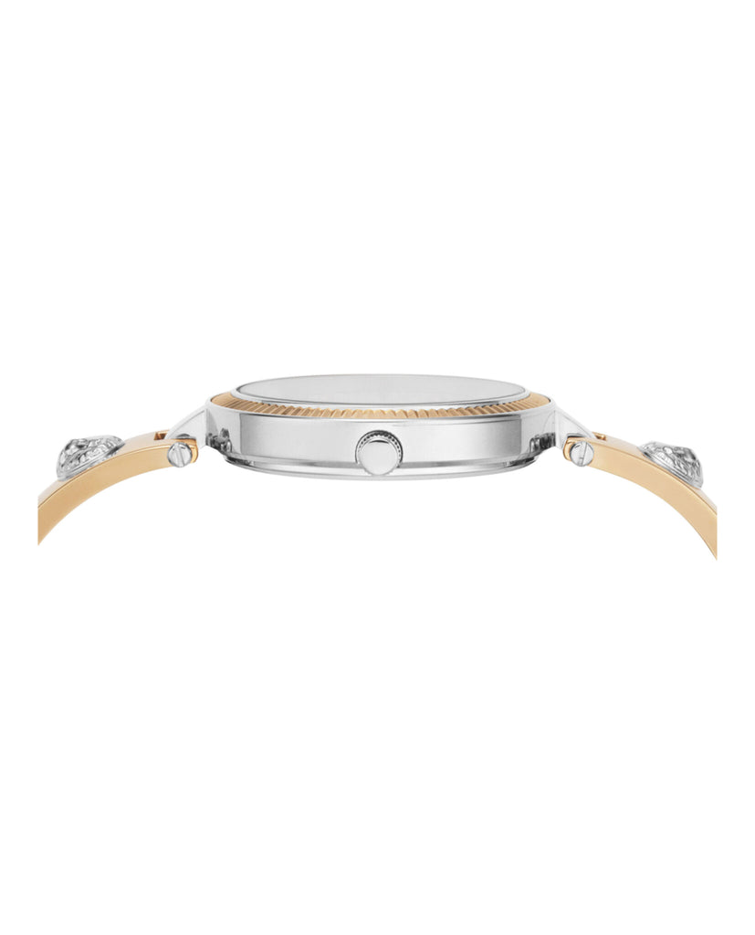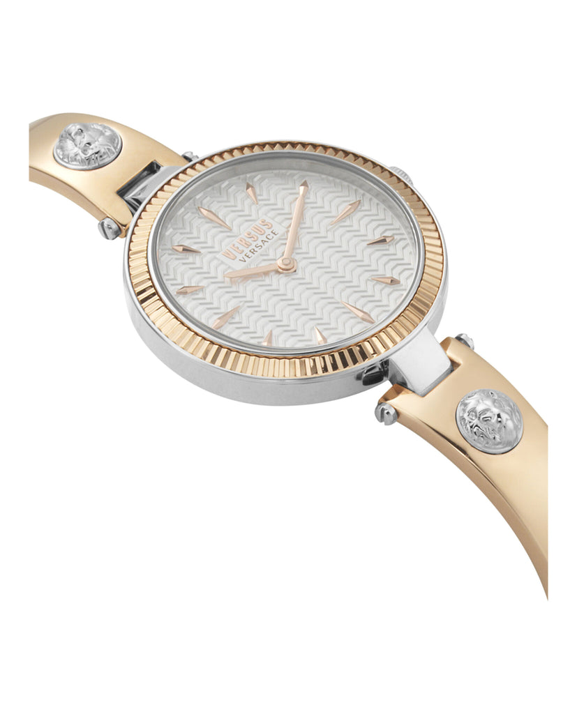 Jewelry inspired, Versus Brigitte is an elegant and timeless watch. To flag the classic bangle with 3d lion head at 12 and 6. Textured top ring and dial to provide a strong DNA injection. To flag the two seasonal colors with IP rose gold finishing.