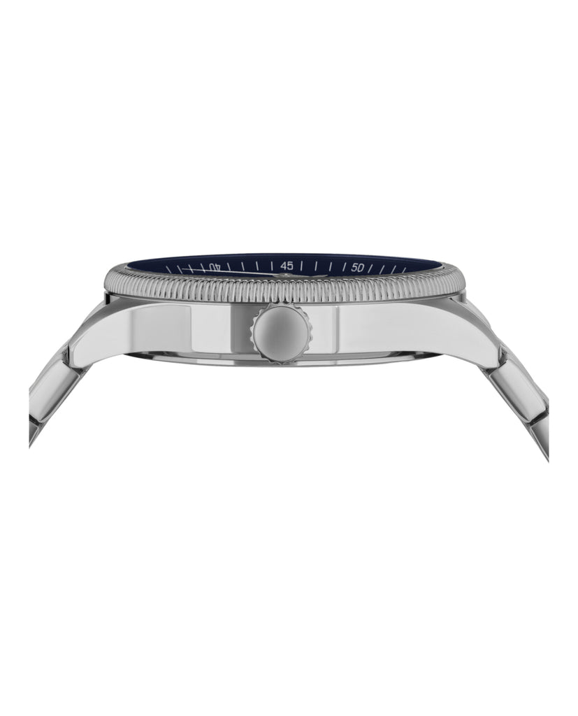 45mm Stainless Steel Case Stainless Steel Bracelet Blue Enamel Dial 3 ATM Deployant Buckle Quartz Movement 2 year limited warranty