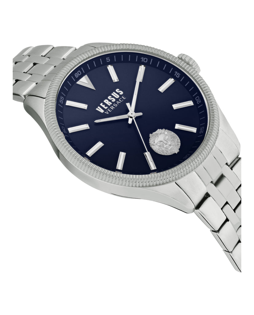 Versus Colonne is a classic and timeless watch. Colonne has a 45mm case body enriched with a textured dial and Versus lion head at 6h. Metal studs as indexes complete the look with a 3 hands movement. Versus Colonne is available in a genuine leather strap or sophisticated bracelet.