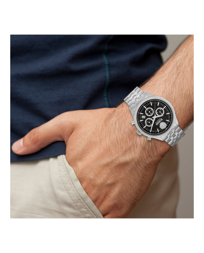 44mm Stainless Steel Case Stainless Steel Bracelet Black Enamel Dial 5 ATM Deployant Buckle Quartz Movement 2 year limited warranty