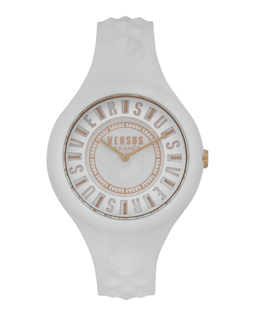 Versus Fire Island moves to the next generation. The newest evolution of Fire Island brings the Indiglo feature to the dial. Indiglo enlighten the dial and the printed lion head with its special led function to flash yours Versus Versace nights.