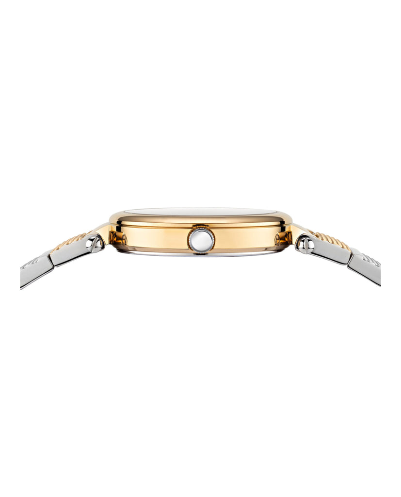 34mm Two Tone Case Gold/Silver Bracelet Green Enamel Dial 3 ATM Deployant Buckle 34mm Movement 2 year limited warranty