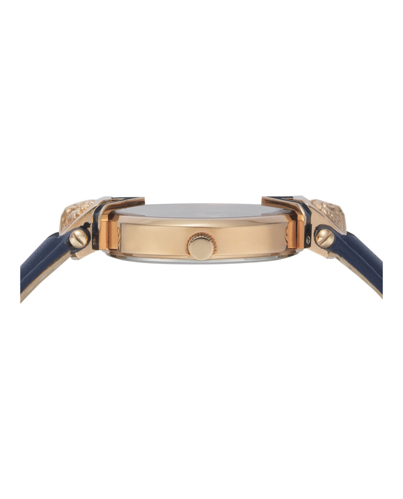 A glamour look for Versus Mabillon Christmas black edition where the 36mm slim case body is enriched with 3d lion head at 6 & 12 o’clock with V Versus end-piece and Swarovski crystal embedded in the dial. Geometrical guilloche, 2 metal studs and Versus Versace logo at 12 o’clock provide a touch of sophistication to this collection. Versus Mabillon is offered in genuine leather strap or in bracelet version
