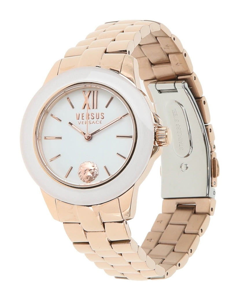 A unisex case, polished bracelets with a variety of ion plated finishes, and a resin top ring colour coordinated with the dial come together to give the Versus Abbey Road a sporty look for casual wear. A 3D lion head at 6 o'clock gives the watch an even more precious feel and makes it as iconic as it is identifiable.