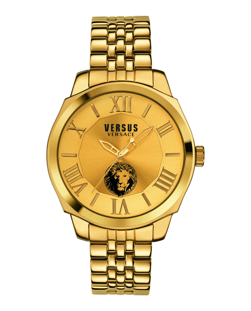 42mm Yellow Gold Case; Champagne Dial; Quartz, 3 Hand Movement Two Tone Bracelet Imported 2 year limited warranty Mineral