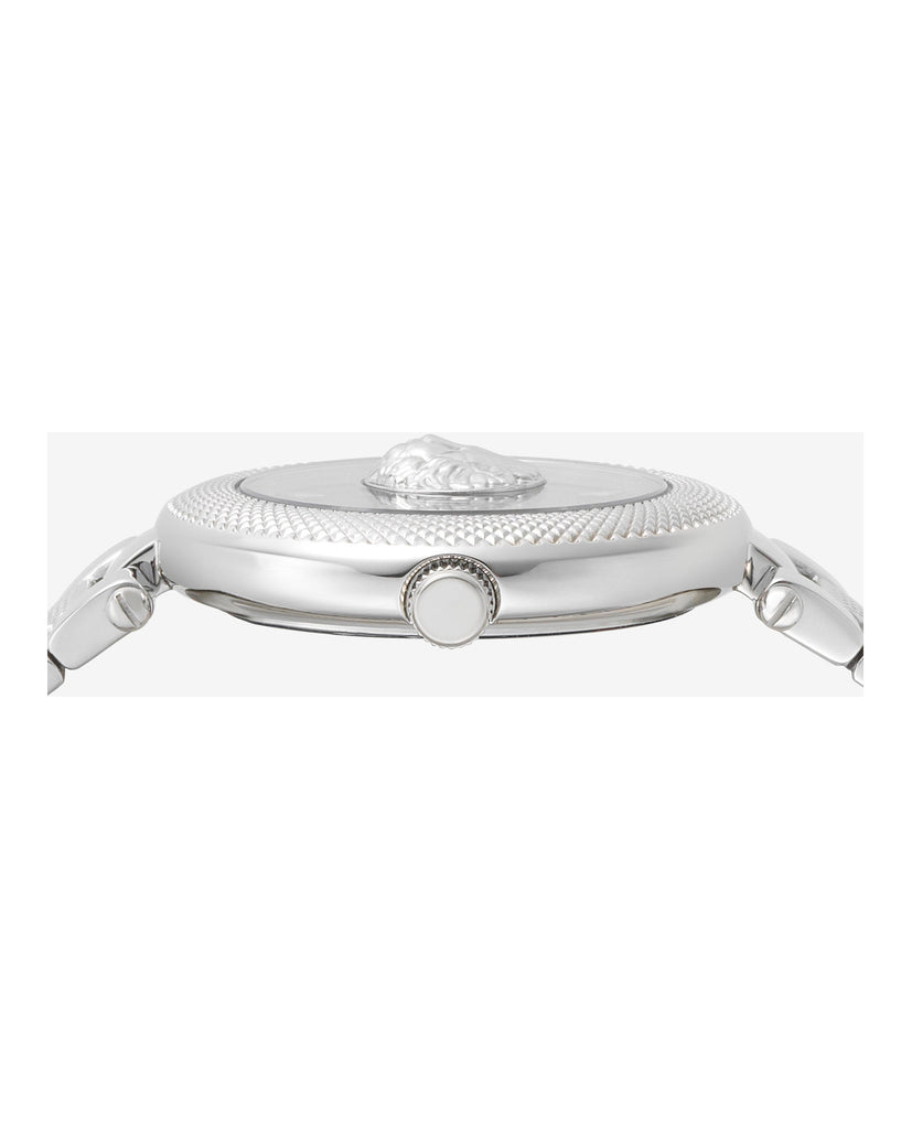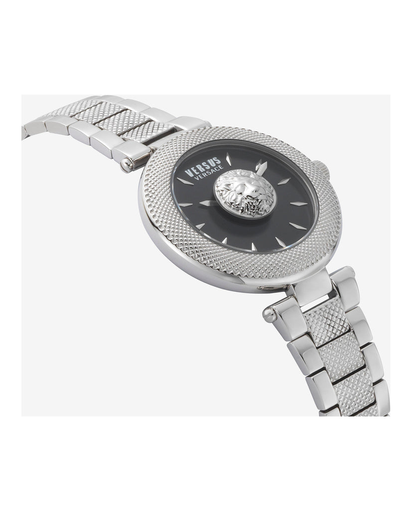 Versus Versace Brick Lane is the timepiece with a name inspired by London's trendiest fashion district. Made entirely from polished steel, Versus Brick Lane is dominated by the distinctive Lion Head. The Clou de Paris motif on the top ring gives the watch an even more luminous, deluxe appearance.