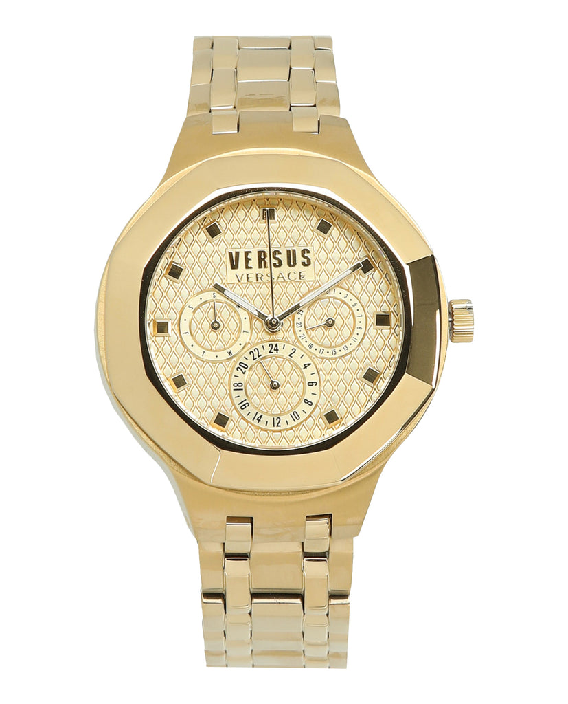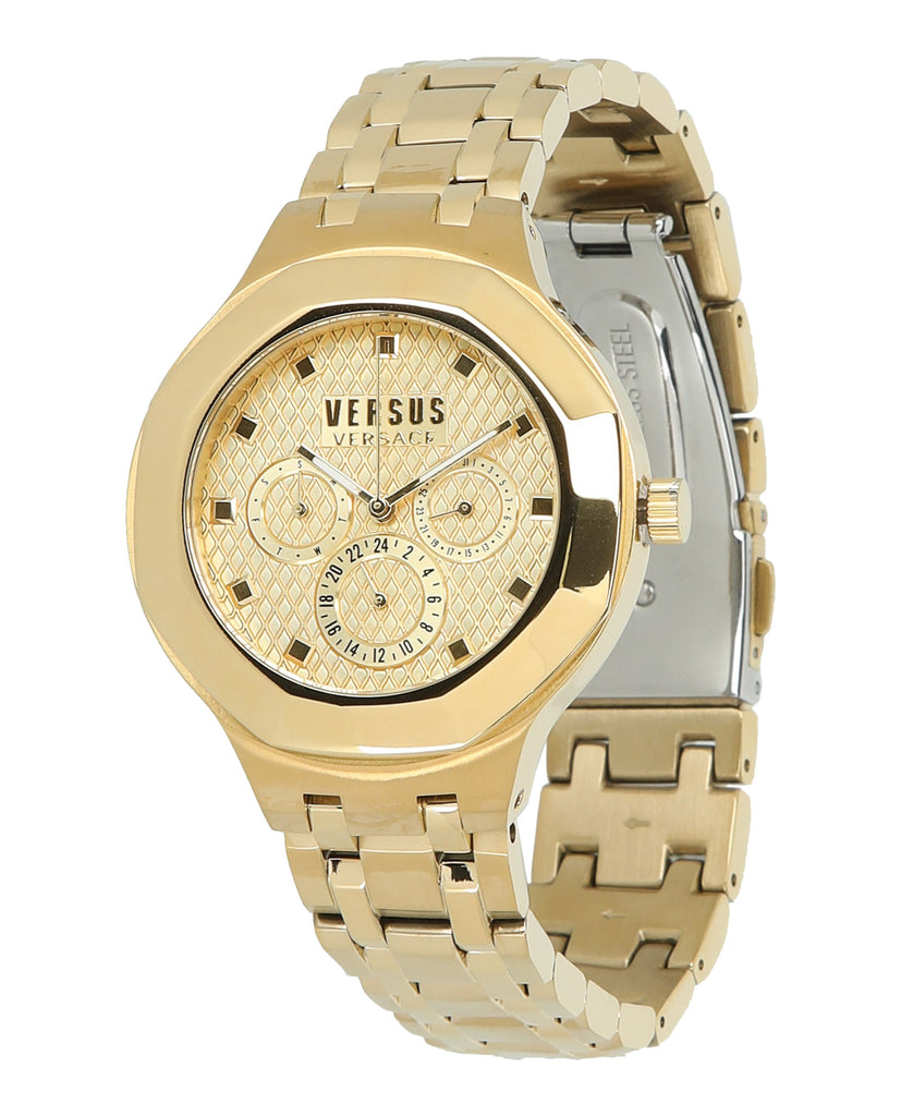 Versus Versace Laguna City is the perfect companion from morning to evening: casual and sportif with its multifuction movement and three counters on the dial, classy at evening with its metallic details.