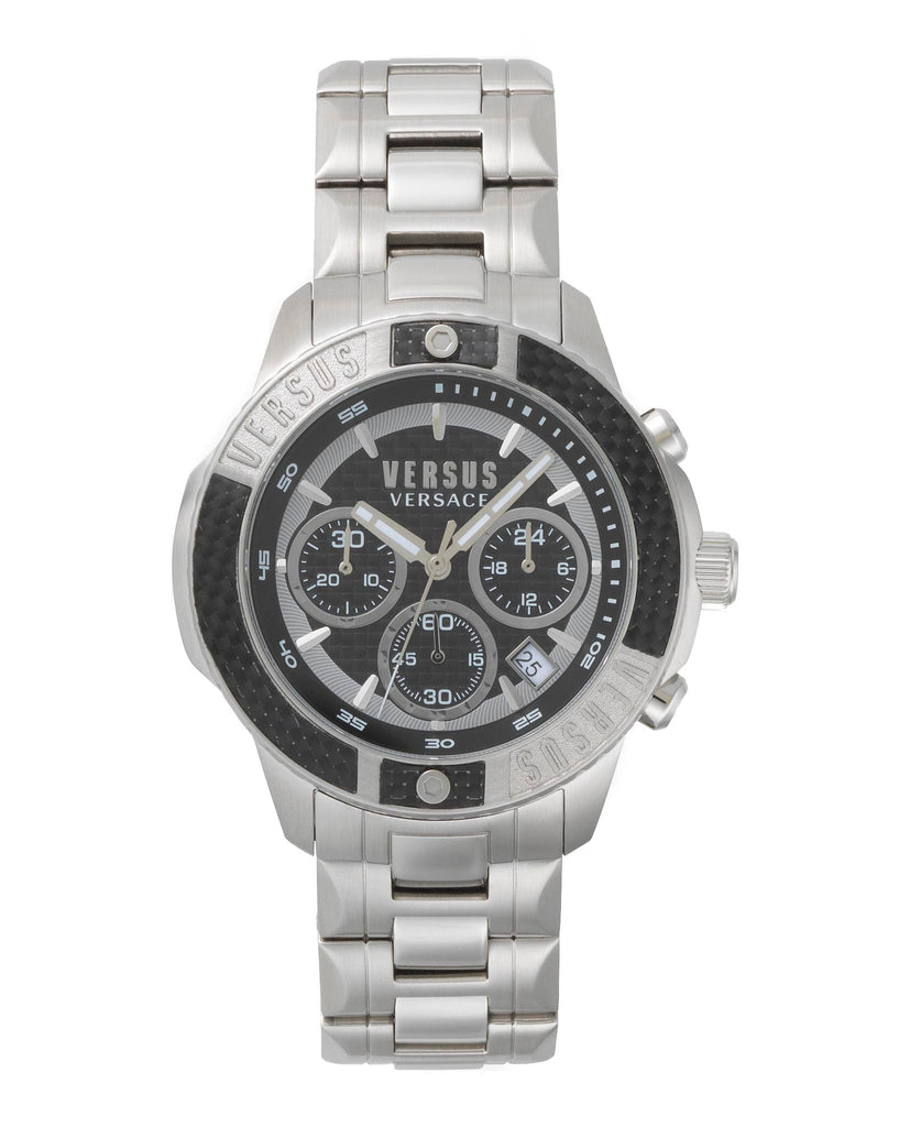 Fashion and trendy, Versus Versace Admiralty represents a bold execution of brand DNA in a gent collection: from the “Versus” logo engraved on the top ring to the rich carbon fiber pattern on the dial.