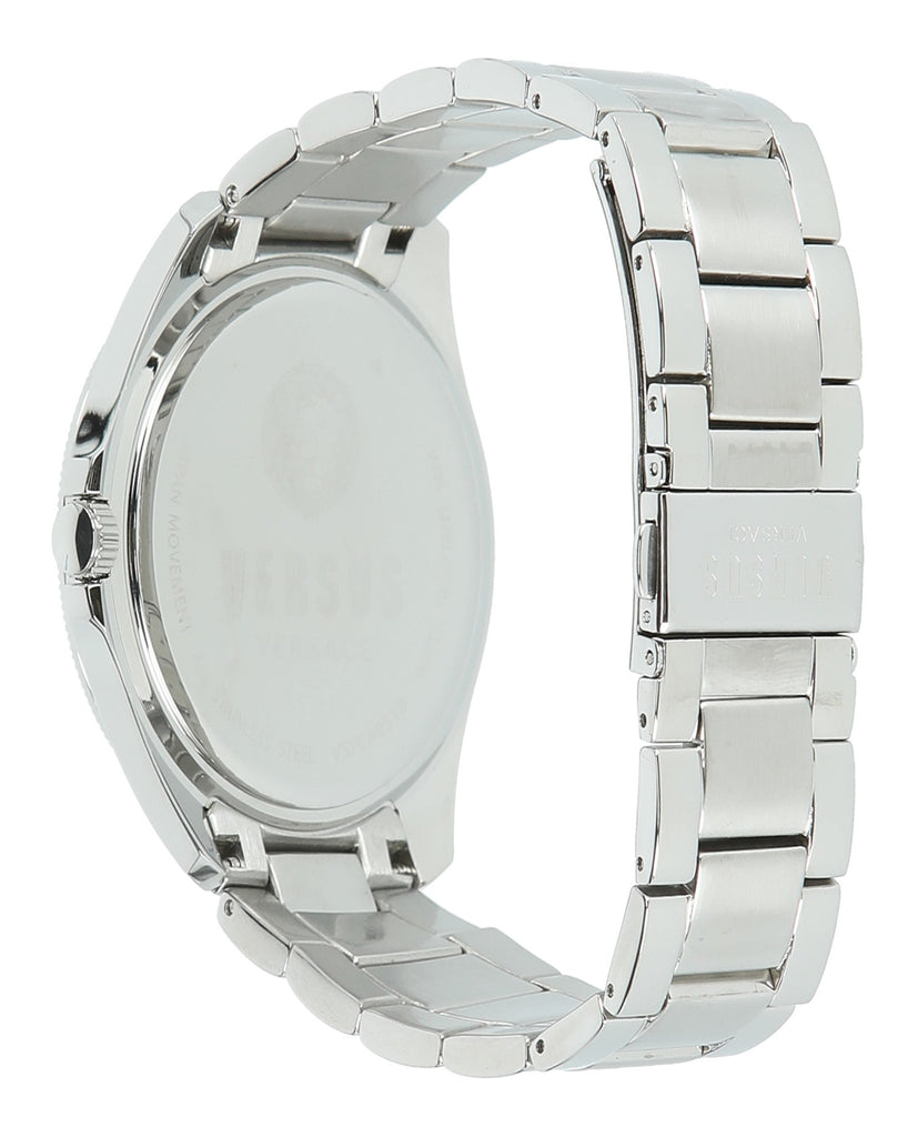 44mm Stainless Steel Case; Blue Dial; Quartz 3 Hand Day, Date, 24h Movement Silver Stainless Steel Bracelet Imported 2 year limited warranty Scratch resistant mineral crystal