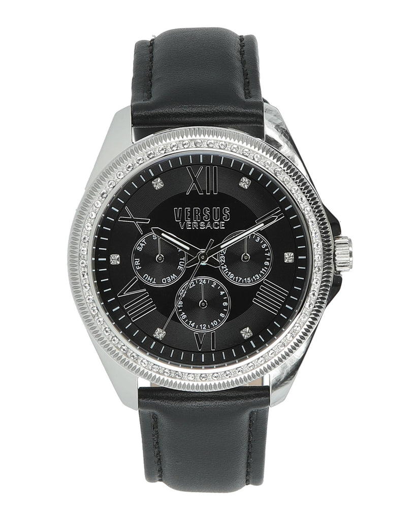 40mm Stainless Steel Case; Black Dial; Quartz 3 Hand Day, Date, 24h Movement Black Leather Strap Imported 2 year limited warranty Scratch resistant mineral crystal
